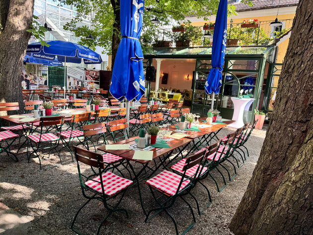 Sonnengelbe Fassade zusammen mit kleinen Bistrotischen und roten Flechtstühlen direkt am Schlosskanal: Das älteste Gebäude der Nördlichen Auffahrtsallee könnte glatt in Venedig oder Paris stehen. Stattdessen befindet sich das Anwesen seit 1730 in Nymphenburg und ist seit 1930 als Metzgerwirt bekannt. Eine Metzgerei sucht man im altehrwürdigen Haus allerdings vergeblich. Dafür legt die Gaststätte großen Wert auf Qualität. In prominenter Lage mit Aussicht aufs Schloss lockt es mit frischen, bayerischen Schmankerln.